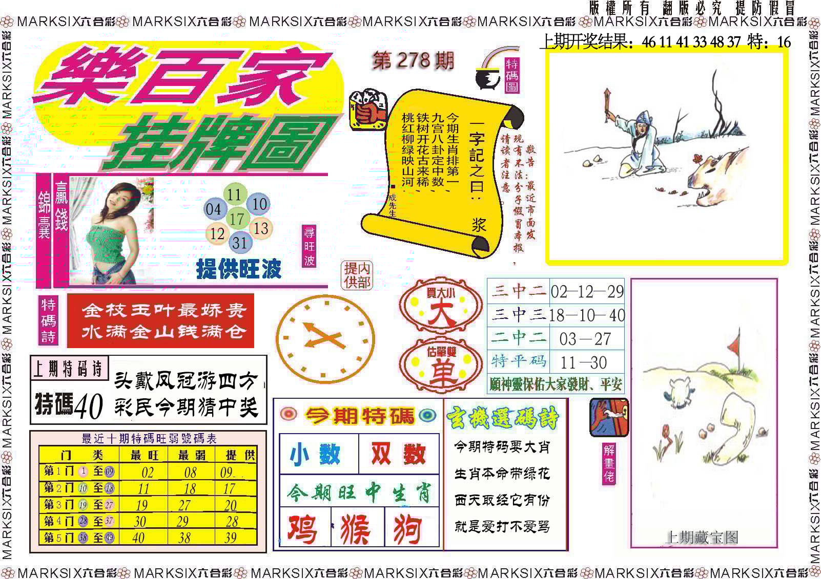 278期:稳赚六肖【兔猪蛇鼠猴牛】开00?